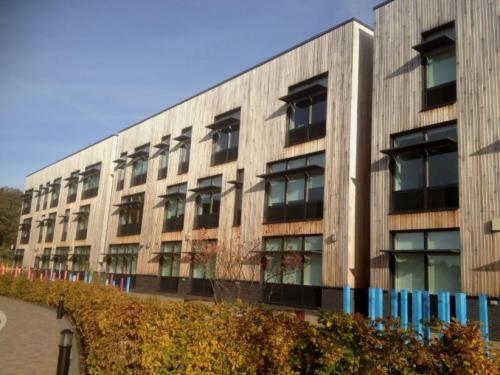 This project comprised of a new school building. The form of the building incorporates a three-storey teaching block with views over the play and sports pitches to the south, with cascading volumes housing the arts centre, leisure centre and swimming pool.